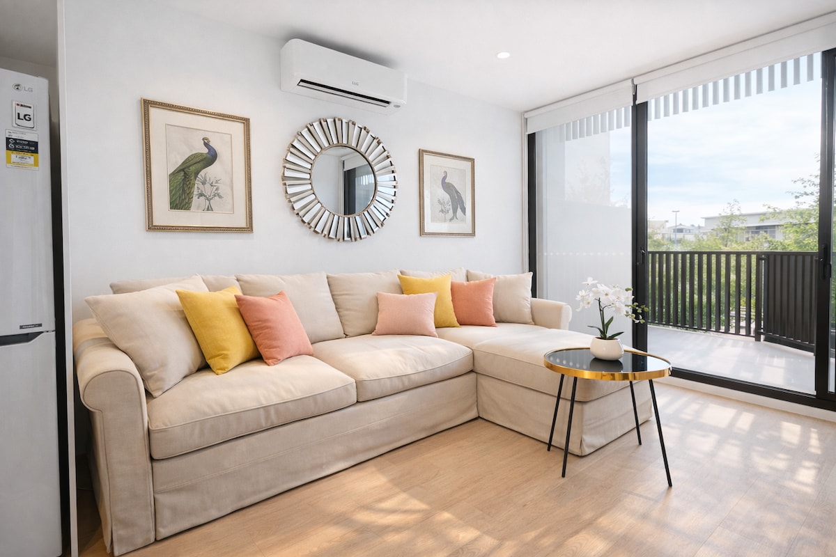 Stay in our beautifully designed 2-bedroom, 2-bathroom apartment located on Bell Street, only 10km to Melbourne CBD. Enjoy spacious open-plan living, modern finishes, and a fully equipped kitchen. Relax in comfort with fast Wi-Fi, your own private large balcony, secure parking, and access to rooftop views of the Melbourne city skyline. Excellent public transport connections, nearby parks, and scenic walking trails, this is the ideal base for exploring Melbourne.