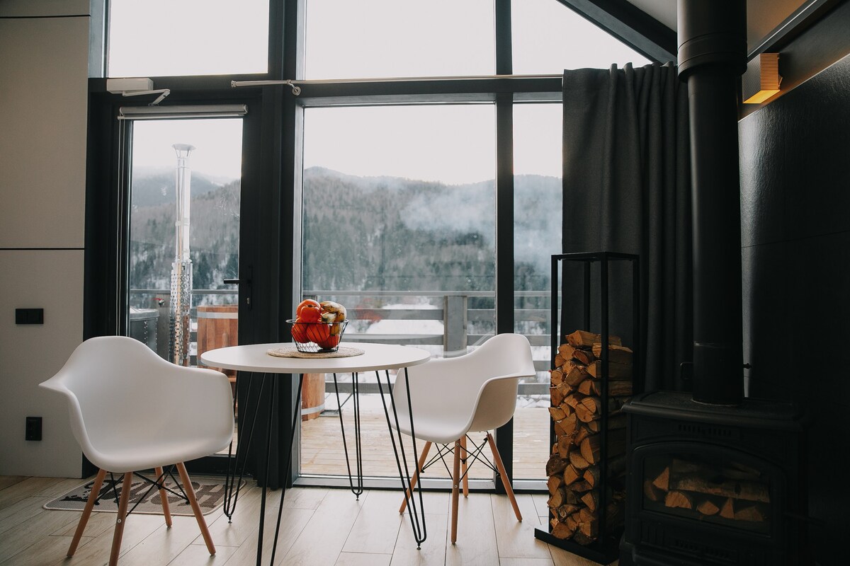 TBARN – a cozy cabin for a secluded getaway in nature Welcome to a place where silence, peace, and harmony reign. Our cabin is located on the outskirts of a village, on a private 1-hectare property. One cabin for guests—so no one will disturb you. Just one neighbor nearby. All around: an old orchard, a small grove, endless fields and forested hills. And in the distance—mountains. The view changes throughout the day, and you’ll want to watch it wrapped in a blanket with a cup of hot tea.