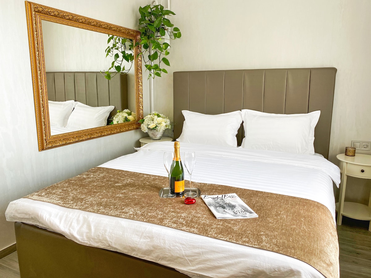 Welcome to Carpathian! Here you can enjoy the fresh air and the beauty of Carpathian mountains. We offer a comfortable hotel room with one bedroom, living room, and a private bathroom. In the apartment, it is possible to accommodate up to 2 adults with 2 children (on a sofa at the living room) You can enjoy traditional Ukrainian food in the restaurant which is a part of our hotel.