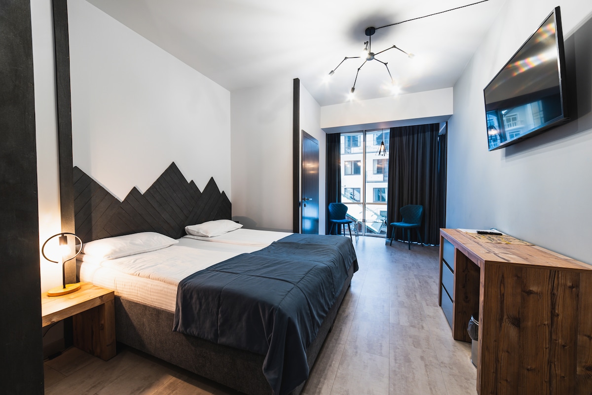 4х зірковий сучасний готель з рейтингом 9.9 балів. Сучасні номери облаштовані двоспальними ліжками, телевізором з плоским екраном і всім необхідним для комфортного проживання. В номерах є ванна кімната з душовою кабіною, туалетом, феном і туалетними засобами. До послуг гостей на території обладнана стоянка, приміщення для зберігання лиж, ресторан і SPA комплекс. Наявність 2х басейнів з підігрівом, тобто у будь-яку погоду ви маєте змогу класно відпочити . Сніданки включені у вартість номера.