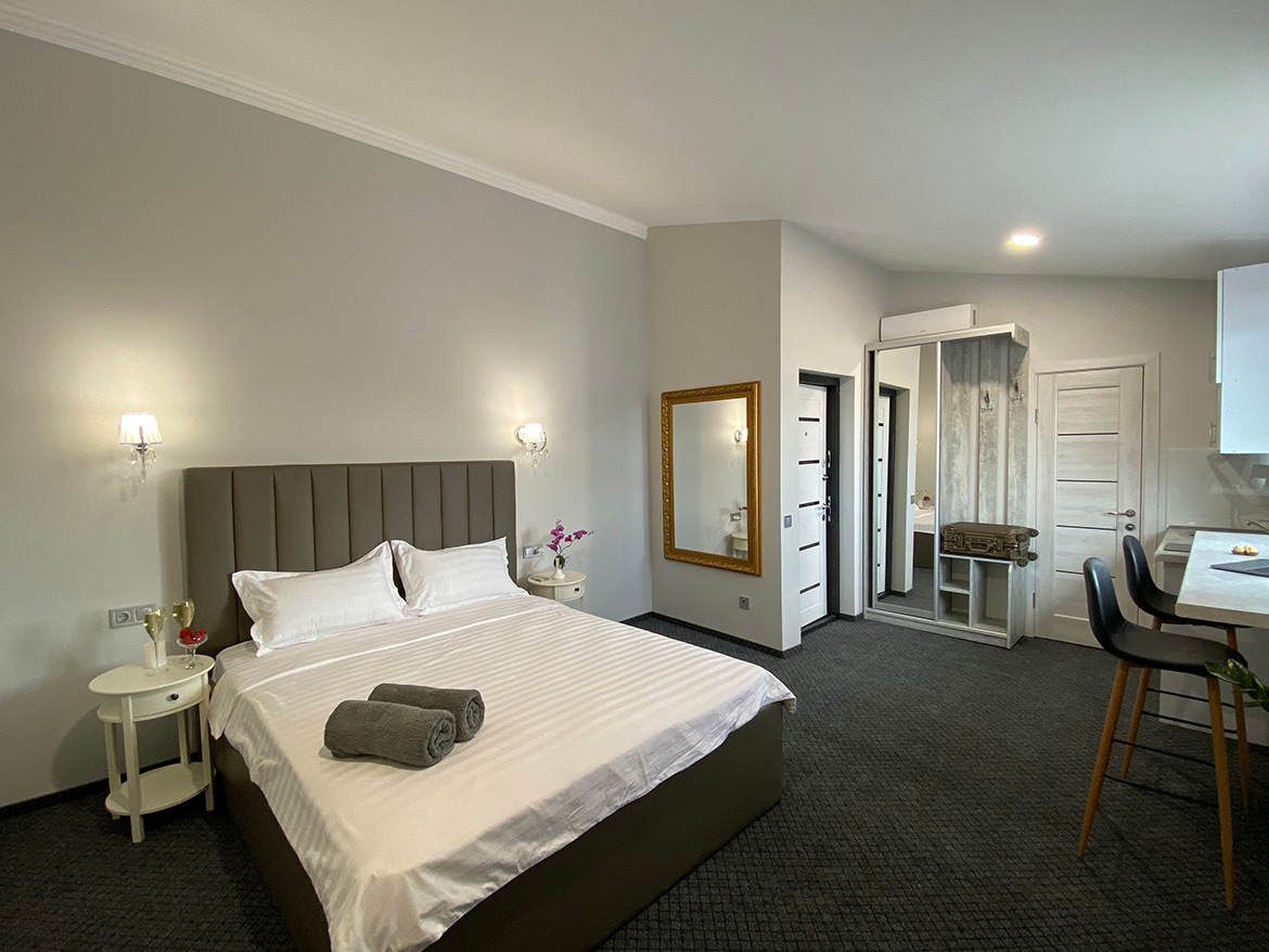 Просторные новые апартаменты в самом сердце Ивано-Франковска! Стильный современный дизайн, уютная студия и полностью оборудованная кухня с посудомоечной машиной и духовым шкафом подарят комфорт высшего уровня. Для вас — скоростной Wi-Fi, панорамный вид из окон и шаговая доступность к лучшим ресторанам и прогулочным улочкам. Атмосфера, в которой хочется остаться дольше и непременно вернуться снова!