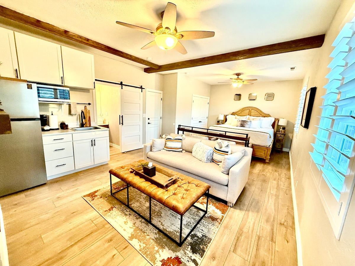 Explore the wonders of the enchanting Southern Utah landscape at our luxurious nightly rental resort! Just 20 minutes outside of Zion and in the heart of Hurricane, Utah, we provide amazing accommodations including the hometown Zion General Store, laundry facility, fire pit, and outdoor gathering places for the whole family! Our spacious Premium Unit is complete with a private queen suite, triple twin bed loft, eat-in kitchen, arcade machine, and private jacuzzi for your serene sunrise coffee.