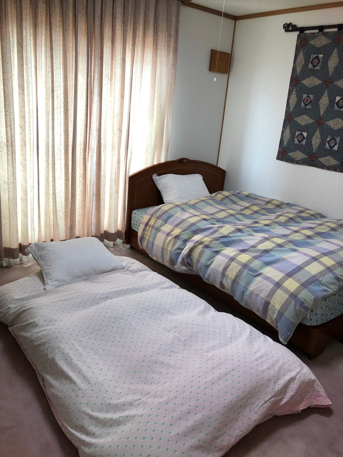 【NEW OPEN from October 15th】⭐︎ Pet-friendly (dogs allowed) ※ High-speed Wi-Fi included ※ Free parking for 2-3 cars, with two double low beds (sleeps 4). Perfect for families. The room is a spacious, clean, and well-maintained space in a six-year-old building. Equipped with central heating, ensuring warmth during winter. With a car, you can conveniently access Sapporo, Chitose, Asahikawa, and Furano. In winter, enjoy skiing, Sapporo’s illuminations, and the Snow Festival!