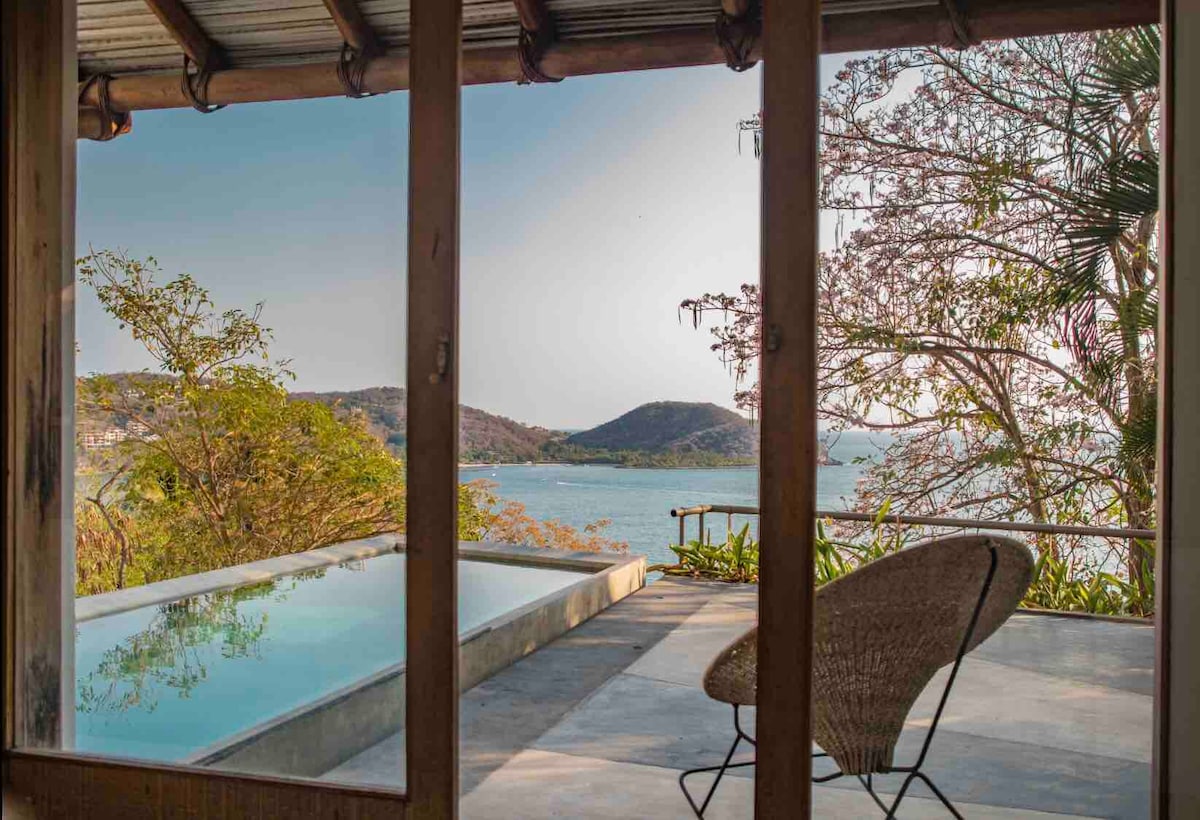 A single home is not a condo, with really great views. Kids accepted, with 13 or older. Daily cleaning and breakfast include. Open living and dining room concept, air conditioned at bedrooms,private swimming pool, terrace, garage. Good restaurants, wonderful beaches, for surf, sail, or just take the sun and rest.. Two golf and tennis courts 3 milles away at Ixtapa. international airport, car recommended. PETS ARE NOT ALLOWED Romantic, peaceful and confortable, I´m sure you´ll love it.