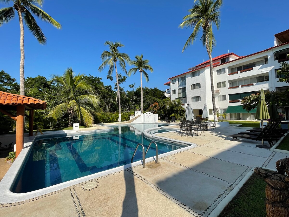 The Nautica Ixtapa is ideally located just a few minutes walk from downtown Ixtapa. Palm trees dotted on the property gives the complex a very tropical feel. The pool is nicely designed and offers plenty of space for all guests. Close to El Palmar Ixtapa beach. This 3BR. / 2BA. condo is beautifully renovated. The kitchen is fully equipped. Bedrooms spacious. Sliding doors open up the entire condo to the tropical outdoors. Lovely pool and palm tree views.