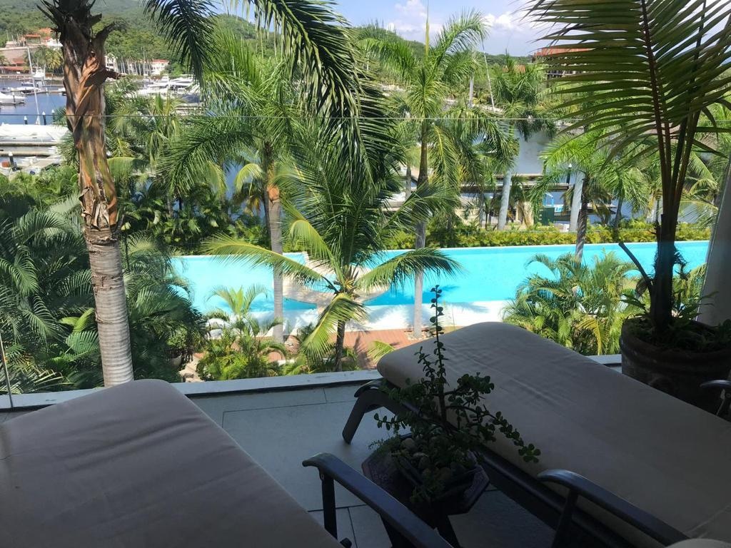 Departamento con acceso directo a la Marina, a 3 min de la playa caminando, recámara con cama King Size y sofá cama, 1 baño completo, aire acondicionado, horno de microondas, estufa, refrigerador, Sala con sofá cama, comedor , terraza, 2 televisiones, wifi, etc. En planta baja . Seguridad 24 horas, vista a la Marina desde la piscina, estacionamiento dentro del condominio. Se tienen que dejar depósitos de $3500.00 en administración para snaks y garantía de daños y faltas al reglamento