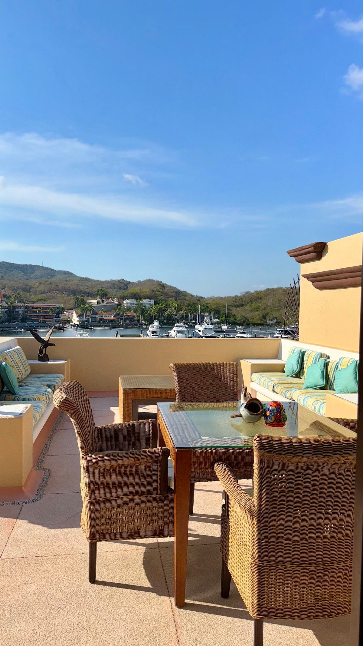 Cuenta con todo lo necesario para que pases unas vacaciones increíbles. La vista al mar es perfecta desde la cocina, desde el comedor, desde la sala, en la recámara principal o en la terraza. La cocina está totalmente equipada por si deseas cocinar con todos los accesorios. El servicio es de primera, los meseros están siempre muy al pendiente por si necesitas botana o una bebida en la alberca. Pueden ir caminando a la zona de restaurantes, a la marina o a las tiendas comerciales.