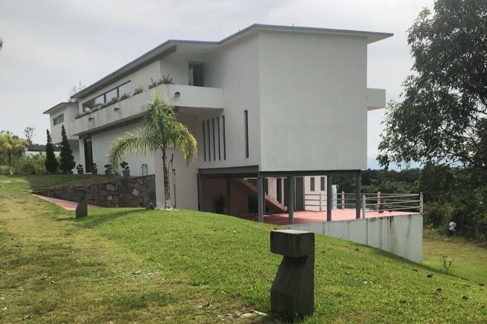 Casa de campo en zona tranquila de Malinalco. 1,350 M2. Sala-comedor rodeada de cristal con vista de jardines en todas direcciones. Amplia cocina al centro y grandes verandas. Dos recámaras con baño completo. Baños de visitas. Dos habitaciones en una "Casa del Hobbit" con bonitos diseños. Dos TV y un proyector con TV satelital y streaming. WiFi . Área de juegos, mecedora, hamacas, estudio y miradores. Un gran ciruelo y otros árboles. Plantas y flores. Estacionamiento para 4 autos.