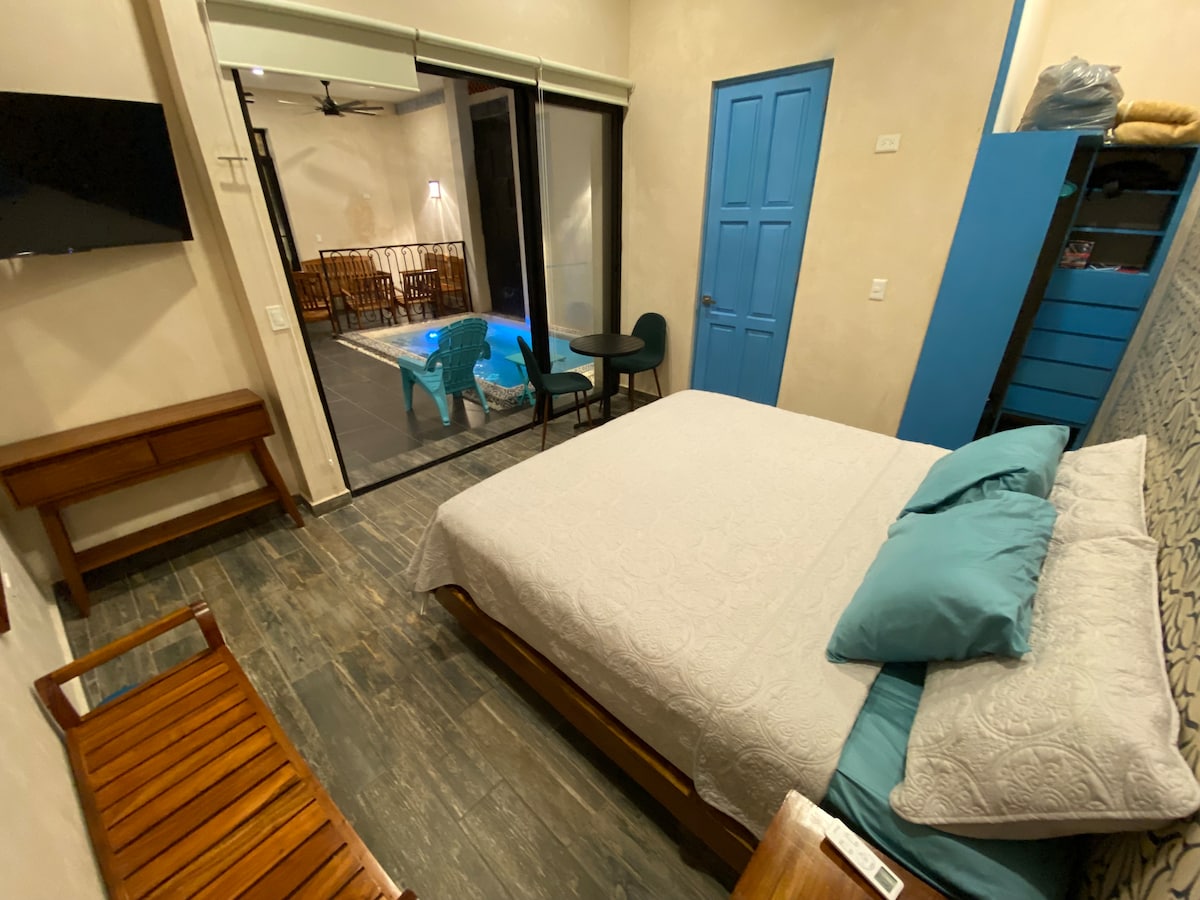 This tidy house, just two blocks from the convent, mercado, and Centro, is perfect for large families/groups, as there are 3 beds and two hammocks in the huge bedroom, and three hammocks in the dining room, and now a 2nd toilet out back. There is an AC in the living room and in the bedroom. There is good internet, and a 42" flat screen for streaming videos. Breakfast includes eggs, bread, milk, cheese, cereal, jam, butter, coffee and tea. Huge secure back yard for your pets to roam.