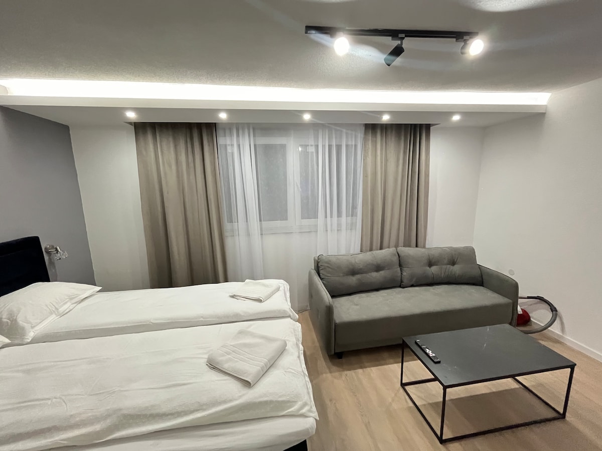Shic, stylish, sparkling clean and cozy 2-bedroom apartment with fully-equipped kitchen and balcony. Located in the quiet area with gorgeous views. Here you can plunge into the peace and serenity being surrounded by modern comfort. This bright and sunny apartment overlooks Piva Lake, crystal clear lake and majestic mountains (just from your bedroom!). The apartment is centrally located, few minutes from the bus stop, shops and cafes. Newly renovated with love to make your stay memorable!