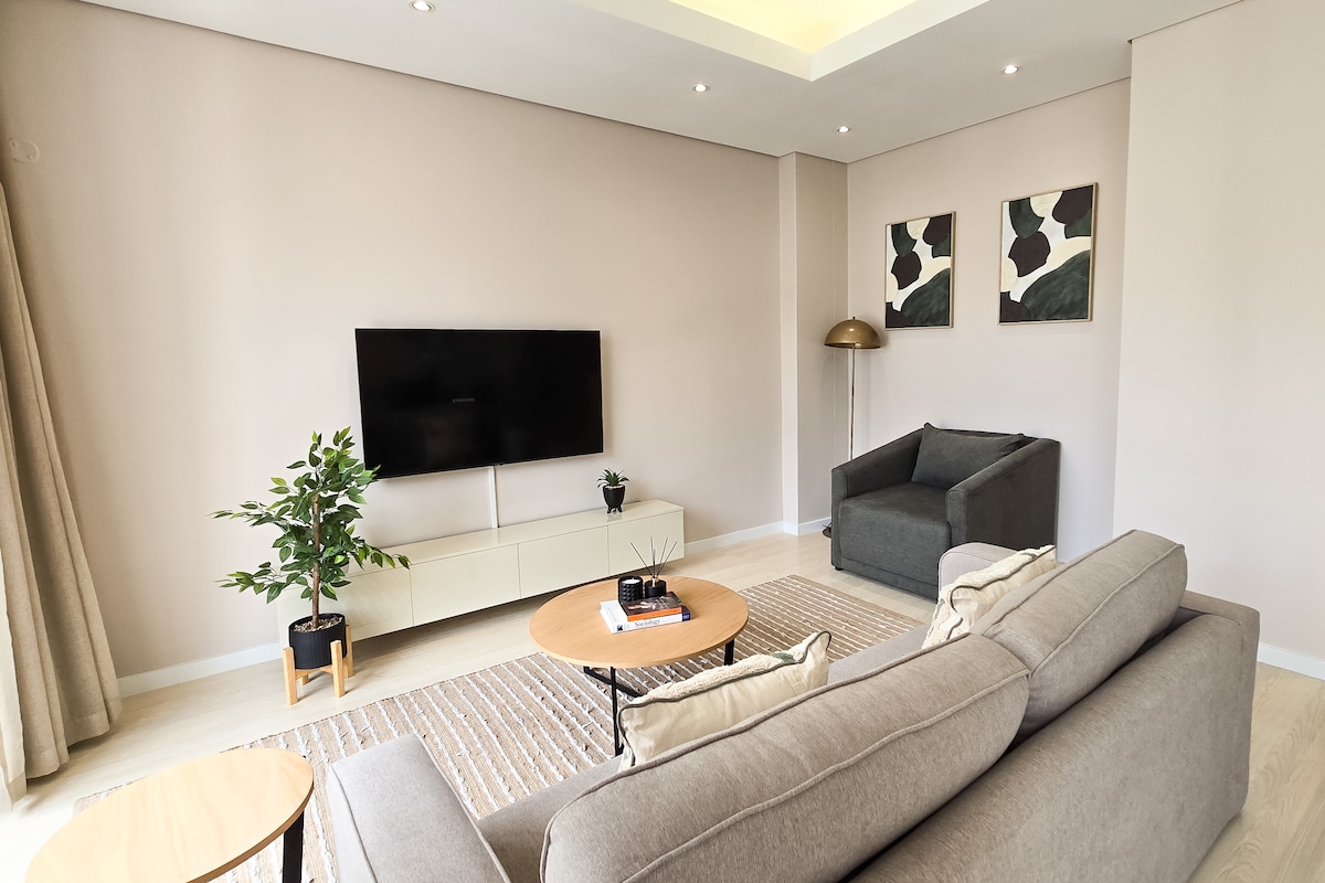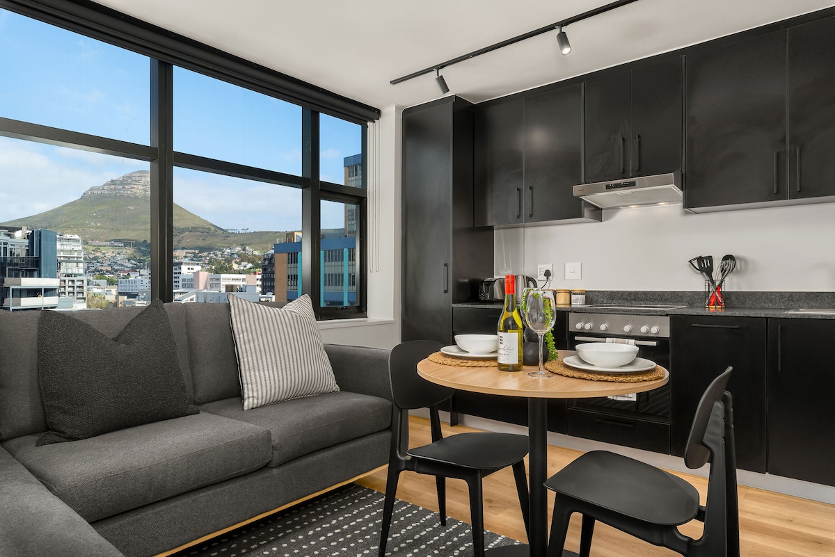 This apartment is a quiet haven of tranquility. Luxurious touches include a marble-topped dining table, quality bed linen, selection of books and artworks which set the space apart from so many hotel rooms out there. This spacious apartment offers everything - a stylish space, spectacular views, fast wifi, daily housekeeping, secure garage parking, Netflix, access to a gym and pool. 24/7 front desk and security means to accommodate late check ins. Beautifully decorated in a calming neutral palette. Text host directly to arrange access. Guests arriving after hours can collect key from 24hr concierge (by special arrangement.) Level of interaction is guest determined Located in the city centre, this is a vibrant area and the ideal place to base yourself to explore Cape Town's major attractions! The V&A Waterfront, Table Mountain, Clifton and Camps Bay beaches, CTICC, and Museums are all a short drive away. There are many restaurants, bars and coffee shops within walking distance. My City Bus transportation system. Taxi/Uber Free wifi, apartment is serviced