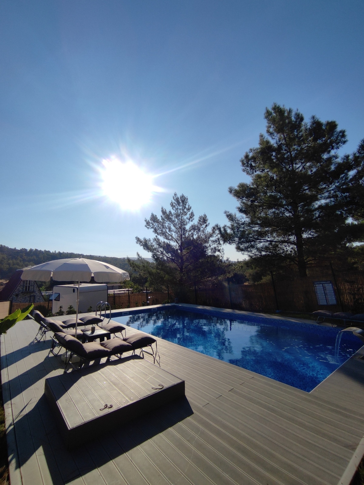 Size, kendi evinizin konforunu ve aynı zamanda hak ettiğiniz tatil hissini deneyimleyebileceğiniz 3 büyük yatak odalı, her yönüyle lüks bir konaklama sunuyoruz. Yüzme havuzu, sauna, fitness, özel jakuzi, Siz adlandırın, bizde bulabilirsiniz. Ormanla çevrili balkonda lezzetli bir kahvaltı yapın ve denizin panoramik manzarasının tadını çıkarın. Çocuklarla keyifli temiz ortamda zaman gecirebilirsiniz. Masa tenisi, trambolin veya sadece salıncak, hepsi 7/24 güvenlik personelimiz gözetimi altında!