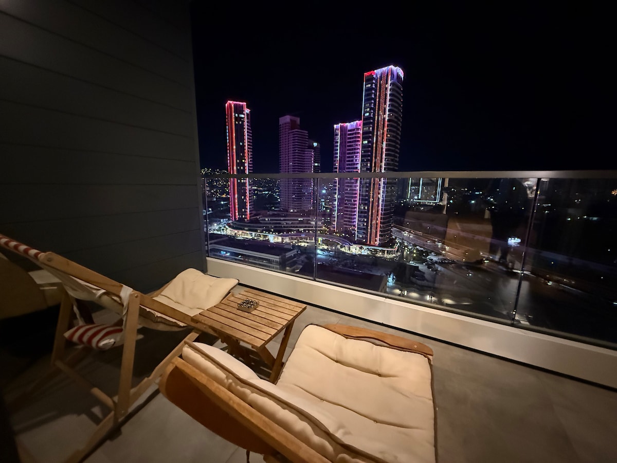 Gökdelenin en tepesinde Muhteşem Teras a sahip olan bu şık stüdyo daire, şehir ve muhteşem Körfez manzarası ve modern tasarımıyla konforlu bir konaklama sunar. TV, (Wi-Fi ) klima, konforlu yatak, ankastre mutfak ve geniş Teras mevcuttur. Havuz, spor salonu ve kapalı otopark kullanımına açıktır. Dilerseniz balkonda da yatak olabilen çek yat mevcuttur.