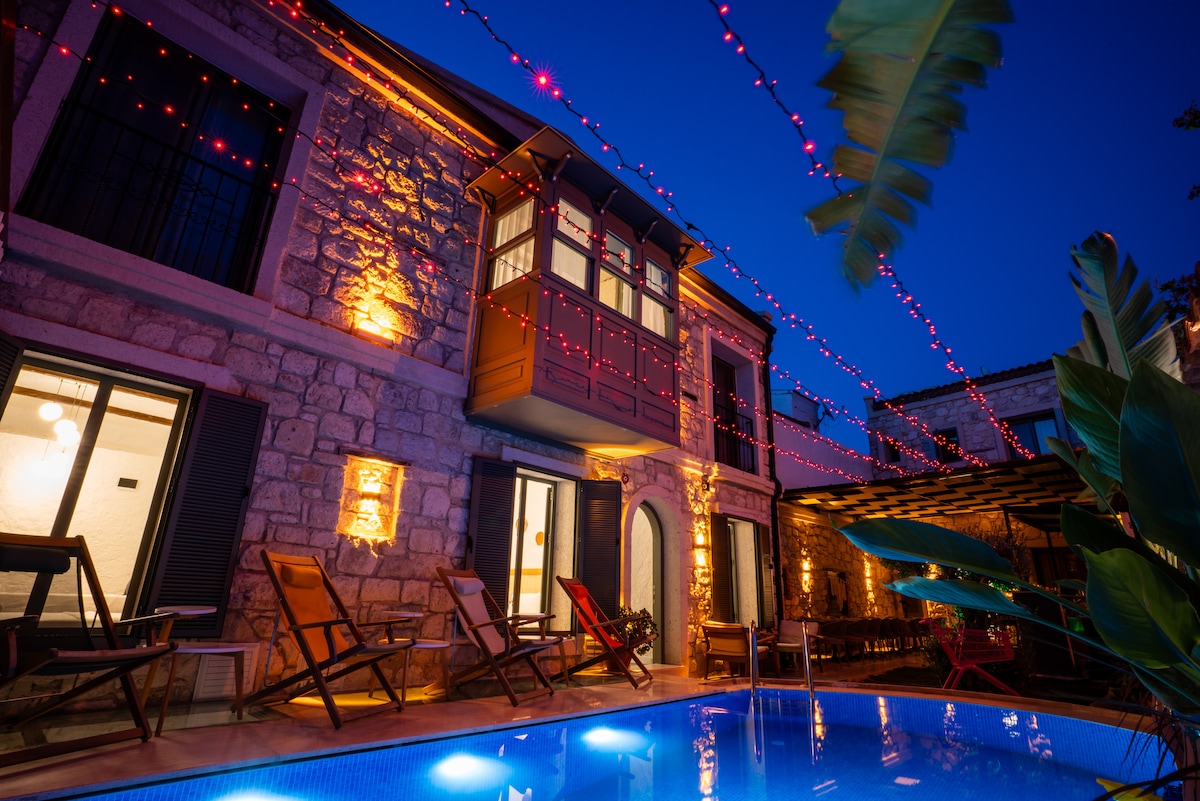 Alaçatı merkezdeki taş mimarili butik otelimiz, 35°C açık ısıtmalı havuzu, masaj hizmeti ve geniş bahçesiyle dört mevsim keyifli bir tatil sunar. Alaçatı Çarşı’sının tarihi taş binaları, rengarenk kapıları, dar sokaklarındaki egzotik atmosferi ve her biri farklı dekora sahip butik kafe ve dükkanlarıyla büyüleyici bir köy deneyimi yaşatır. Taş sokaklarda fotoğraf çekerken, günün sonunda şömine başında sıcak şarabını yudumlayabilir,kahve köşemizde dinlenebilir veya lobimizde maç keyfi yaşayabilir.