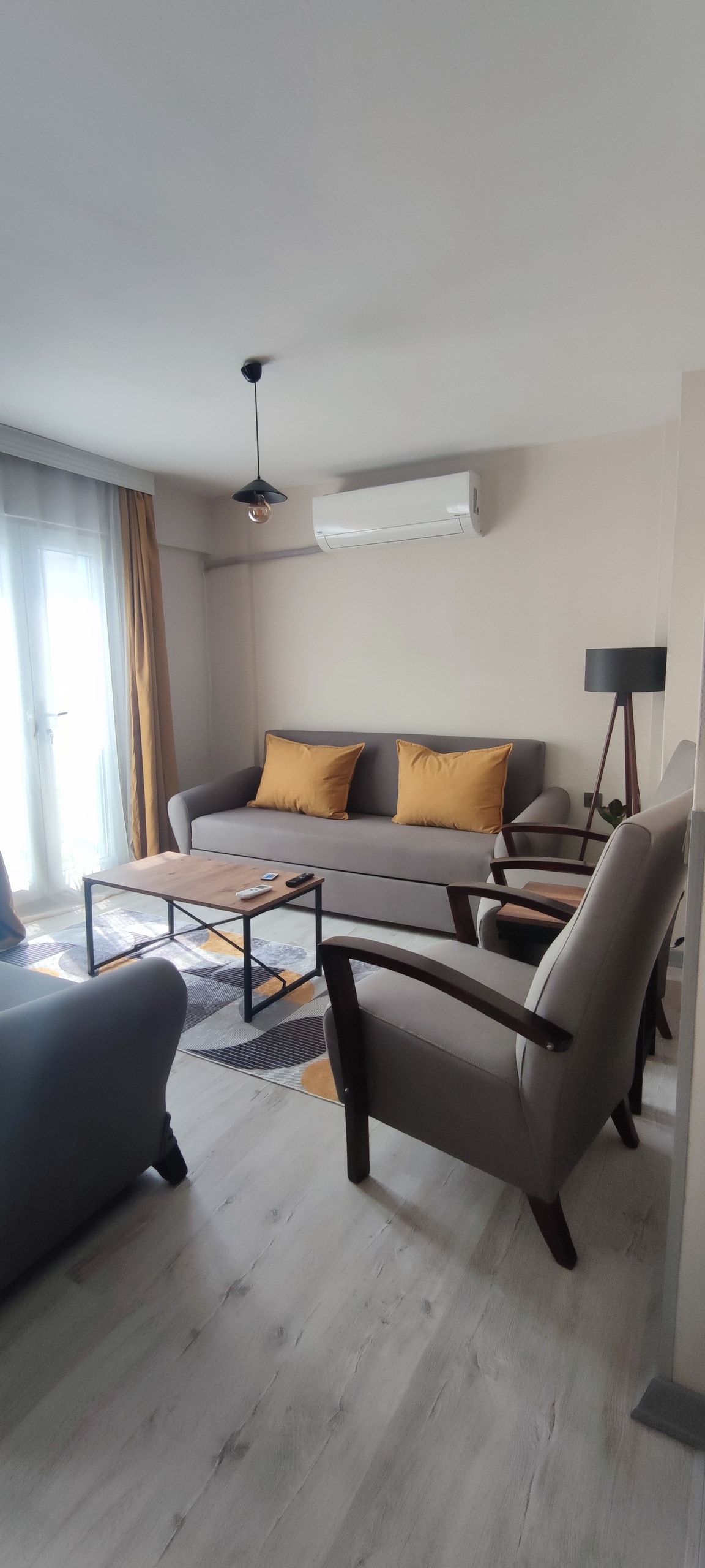 Enjoy city life in our modern apartment, just a 3-minute walk from the Karşıyaka waterfront. ☀️ Sip your morning coffee on the spacious terrace and watch the sunset in the evening. 🚃 The tram, train, and ferry are all within walking distance, and there’s a direct train from the airport. 🏡 With 2 bedrooms, a fully equipped kitchen, fast Wi-Fi, and a cozy living area, you’ll feel right at home. ❗ Please note: The building has no elevator, but a few steps lead to a modern flat with a charming te