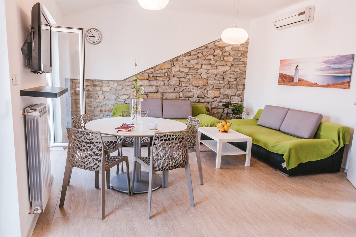 This stylish 2BR apartment is located on the ground floor of our family home in a quiet residential area. Inside, you'll find a spacious living room, dining area, and a fully equipped kitchen. Outside, relax on the lovely terrace with lounge furniture or enjoy meals at the summer kitchen. You're just a 5-minute stroll to the sea and a leisurely 10-minute walk to the old town. The nearest beach, Delfin Beach, is 8-minute walk away. Everything you need for an unforgettable vacation is right here!