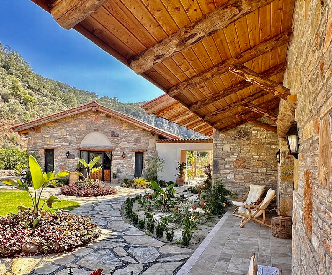 Located in the beautiful village of Gokbel near Dalyan, The Palm House is the ideal spot for visitors looking for serenity, relaxation, and privacy in a rural setting. The Palm House is an authentic village house made of stone and loved by many for its private pool overlooking the Mediterranean, its proximity to Kargicak and Iztuzu beaches and its soothing environment. A family looking for a serene place? A couple searching a romantic and private getaway? Be our guest at Palm House Dalyan.