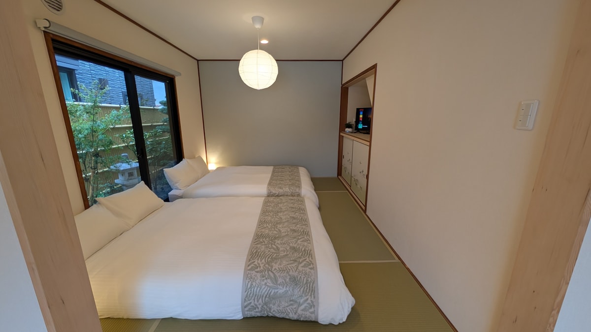 和式花园套房,距离关西机场6分钟车程,配备2张双人床