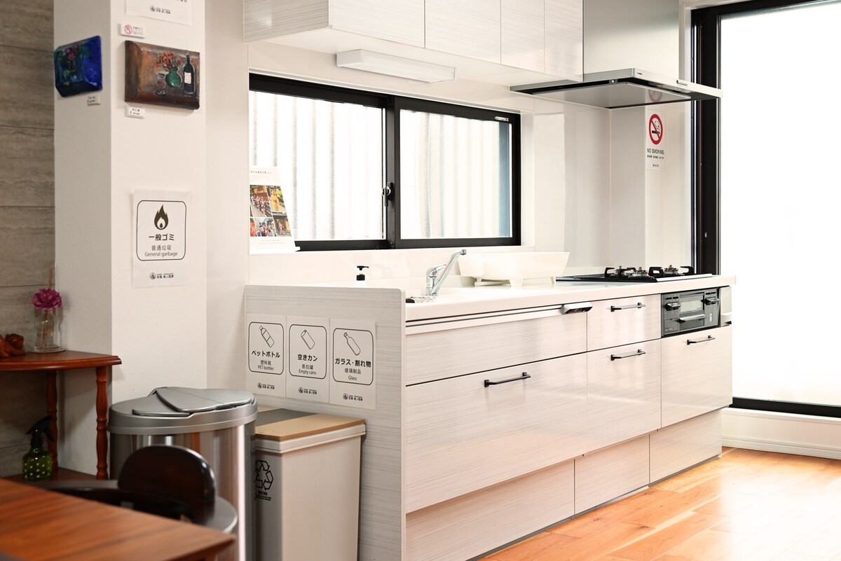 民宿,不等于廉价。打破对民宿的传统定位,我们能给予您的更是一份家的温暖,超越五星级酒店的服务! 1. 我们致力打造"吃喝玩乐住行"一站式服务,让您不虚此行。 2. 房屋内的设备、展示品、用品均为5星级标准。 3. 我们的清扫工作由"日本第一"之称的专业清洁公司负责,卫生质量严格把关。 4. 民宿周边有许多"隐家"餐厅,都是当地人有口皆碑,爱不释手的美食。我们可为您推荐及免费预约。所谓"酒香不怕巷子深",在享受高性价比的同时,相信也一定能满足您的味蕾,让您品尝到别具一格的、舌尖上的"大阪"。 坐落于大阪市中心(城东区),建立于明治42年(1909年)。第二次世界大战时,在空袭中遗留下来的为数不多的独立独户。于2015年由日本知名设计师设计并装潢,占地面积150平米,闹中取静。房屋外观优雅大气,内饰装潢及设施均采用现代化设备。历史文化与现代时尚的两两结合,无论是文化体验,还是宽敞舒适,都是大阪市内屈指可数的高级和风旅荘。相信这里一定会是您的不二选择! 我们在设计上追求人性化,整套房子有两处卫生间并且与洗漱区,大浴场实现三室分离,确保多人入住时,有独立空间,干净卫生的环境。