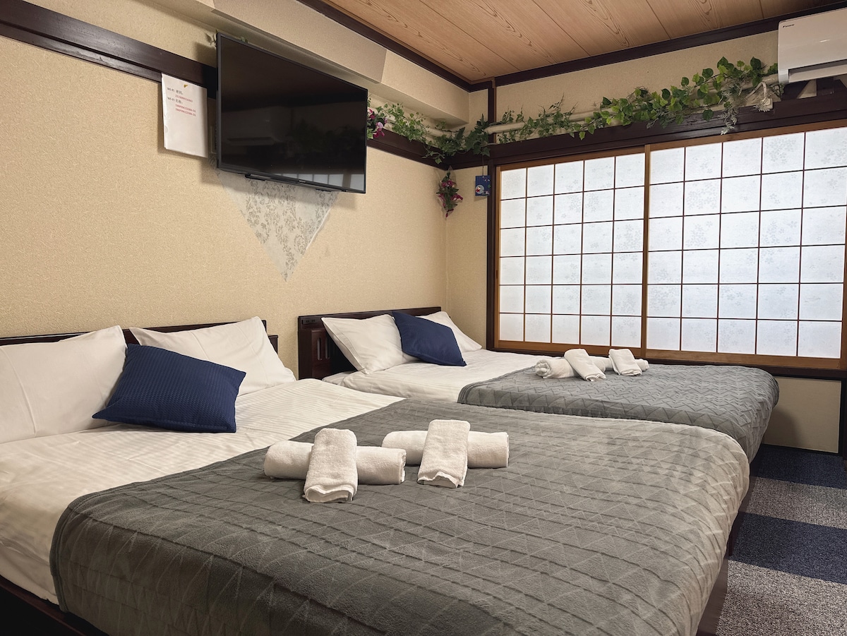 黑门店/双大床/家庭入住/最大4人/南海难波站8分/关西机场直达黑门市场难波道顿堀动漫街