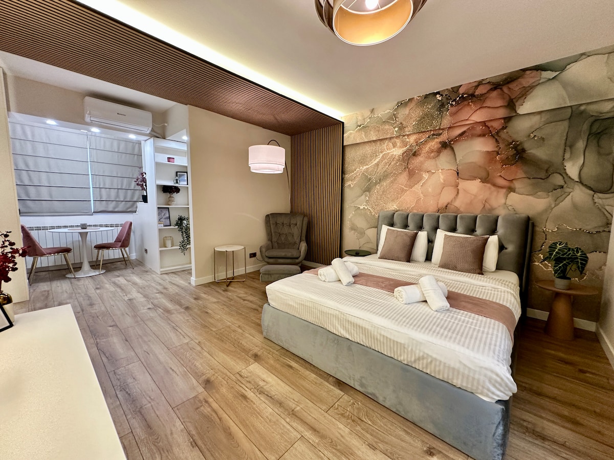 A beautiful and bright studio located in the heart of Bucharest, right on Kogalniceanu boulevard, just a short walking distance from the Old Town and Cismigiu Park. Location wise it doesn't get any better than this. The place is easily accessible by public transport (bus & metro). This stylish studio was fully refurbished in 2021 with high standard materials and has all the necessary amenities for a perfect stay.