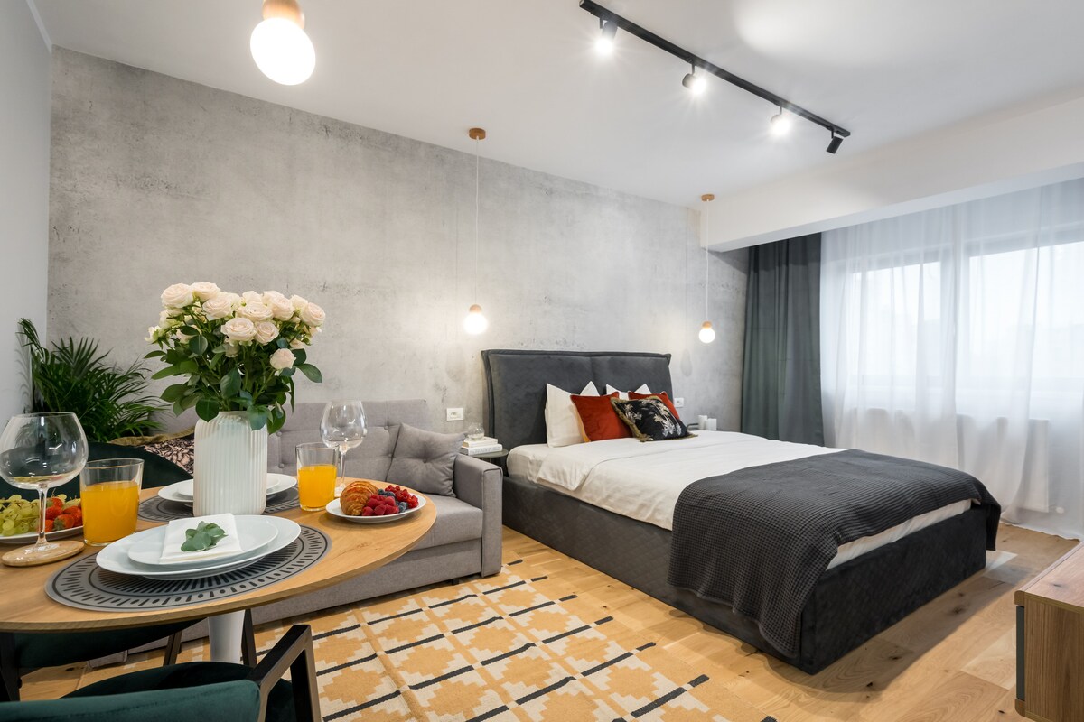 This beautiful and chic studio is located in the heart of Bucharest, right Brezoianu street, a short walking distance from the Old Town. Location wise it doesn't get any better than this. The place is easily accessible by public transport (bus & metro). This stylish flat was fully refurbished in 2021 and has all possible amenities available for a perfect stay.