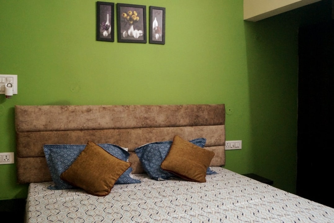 This room size is approx. 200 sq feet which has 2 wardrobe, mirrors, attached bathroom with radiant and bright lights. This room is equipped with 32" smart TV , AC, one King size bed and one single bed for 3 adults. You’ll love the stylish decor of this charming place to stay.
