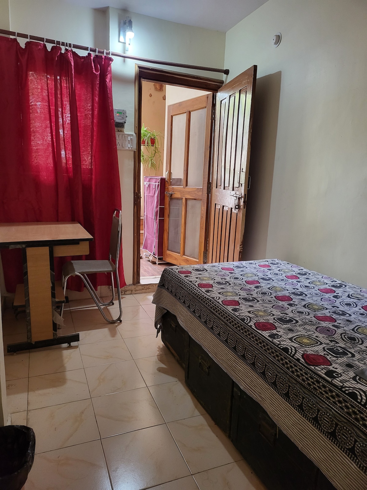 This Homestay has 1 Room with Queen Size bed + a Passage with Bunk Bed + Kitchen and Washroom. Kitchen has Induction + Basic cooking utensils + Fridge. We provide Milk + Tea + Sugar + Basic Spices to all guests. It's a cozy place with minimalist wall work and interiors, peace is unique and so is this staying unit. Bunk Beds add a charm to sleep.
