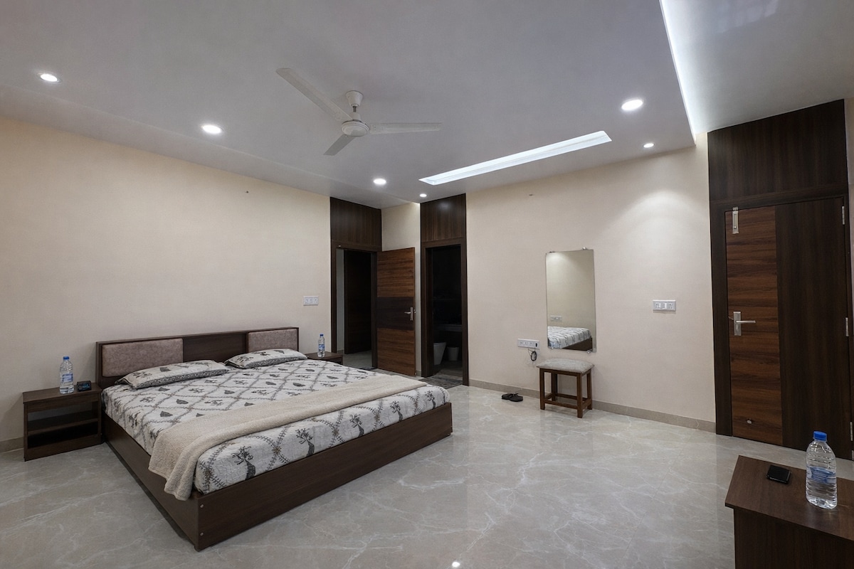 The apartment features modern, luxurious interiors with a spacious 2500+ sqft carpet area. It offers two 350+ sqft bedrooms with a shared balcony and one 250+ sqft bedroom. Each room has a private attached washroom with ample amenities to ensure a comfortable stay. Located in the heart of the city, it provides easy access to malls, hospitals, restaurants, and tourist spots, along with peaceful shared spaces, a fully functional kitchen, and three balconies. Smoking is strictly not allowed!