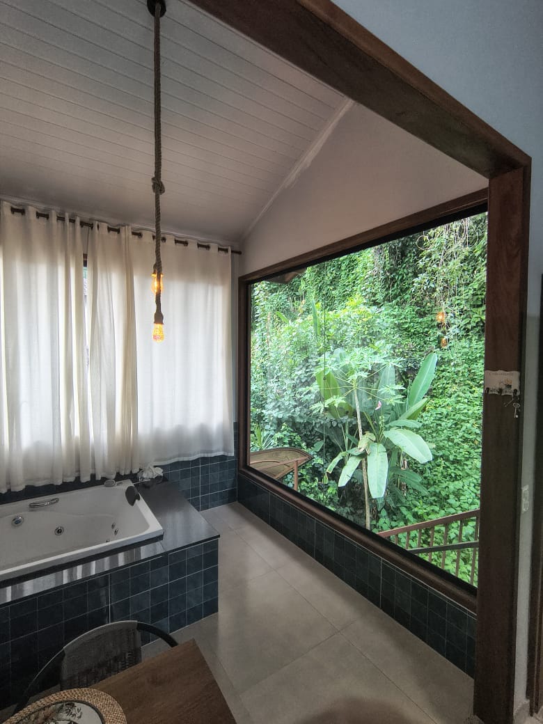 Suite elegante e relaxante em uma das ruas mais tranquilas do bairro nobre Caborê, no centro de Paraty Viaje com conforto e a calmaria da vista das montanhas e visita dos amigos macaquinhos pela manhã Temos uma cama casal com colchão de mola Novo comprado dia 28/12/22 Estamos a 2 km do centro histórico e 1 Km da praia do Jabaquara