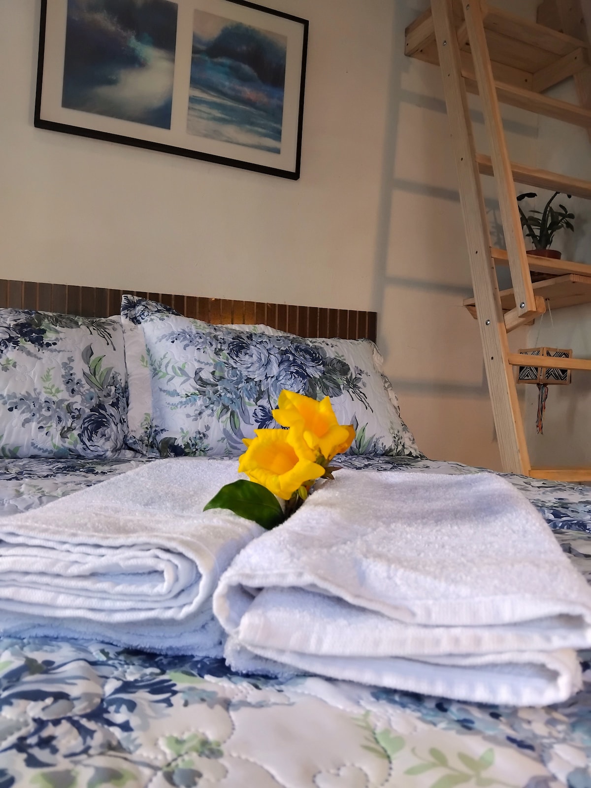 15 minute drive from Paraty central, enjoy a peaceful, creative home with a spectacular sea bay view. Down the stairs in the garden, you have a private deck, queen bed, and a full kitchen for longer stays. Ideal for 2-3 people who prefer quiet, simple and beautiful. Free easy parking on premises, AC, strong wifi, Smart TV, Queen bed, single bed/couch.