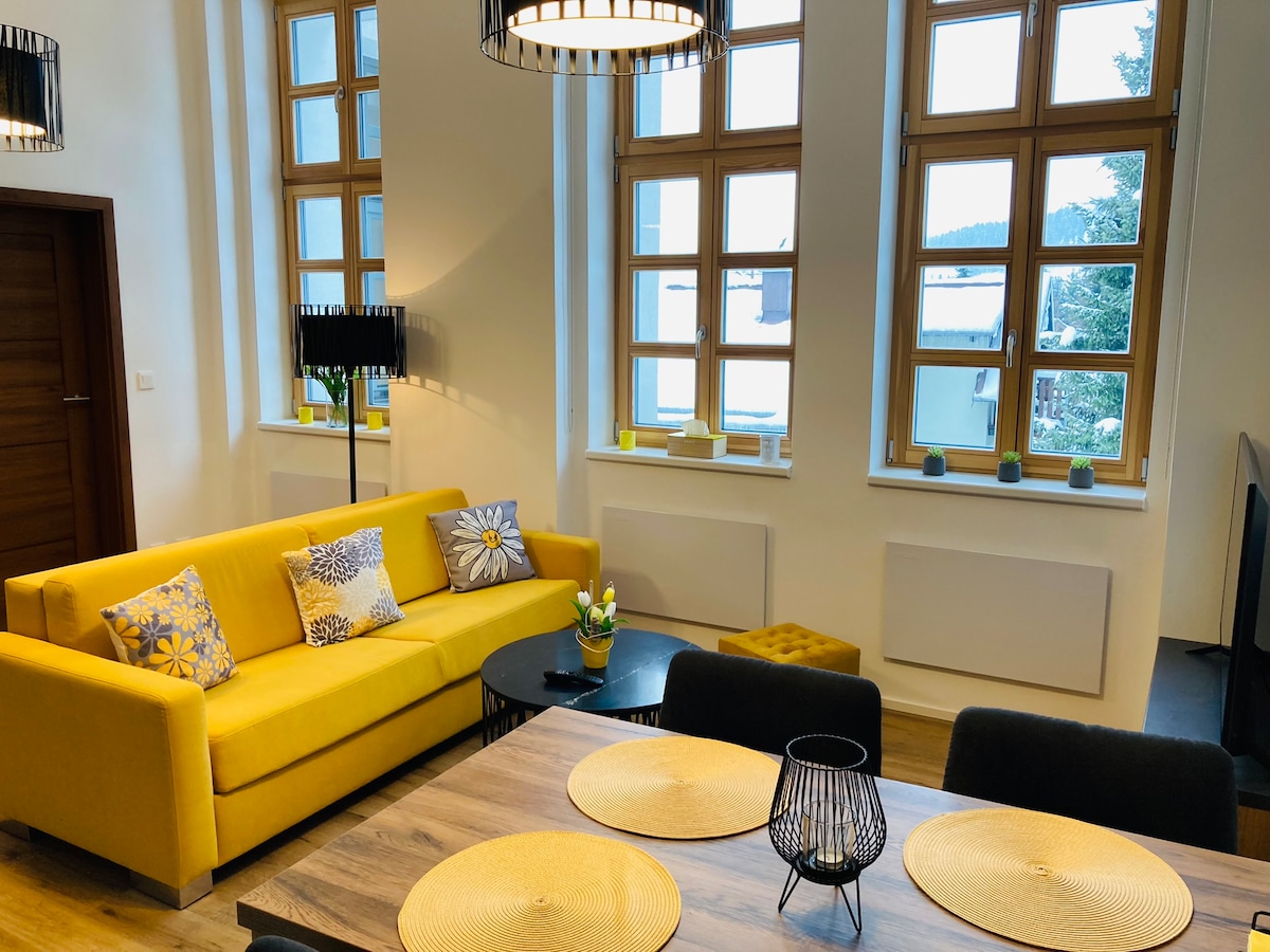 In the city center, bus stop to Bedrichov 20 meters. In Bedrichov a lots of opportunities for mountain biking in the summer or skiing and cross-country skiing in the winter. Accomodation available for single travelers, families with kids. Small pets are OK. Breakfast is included and it is served in the deli store Lahudky Vahala (downstairs, same building as the apartment).