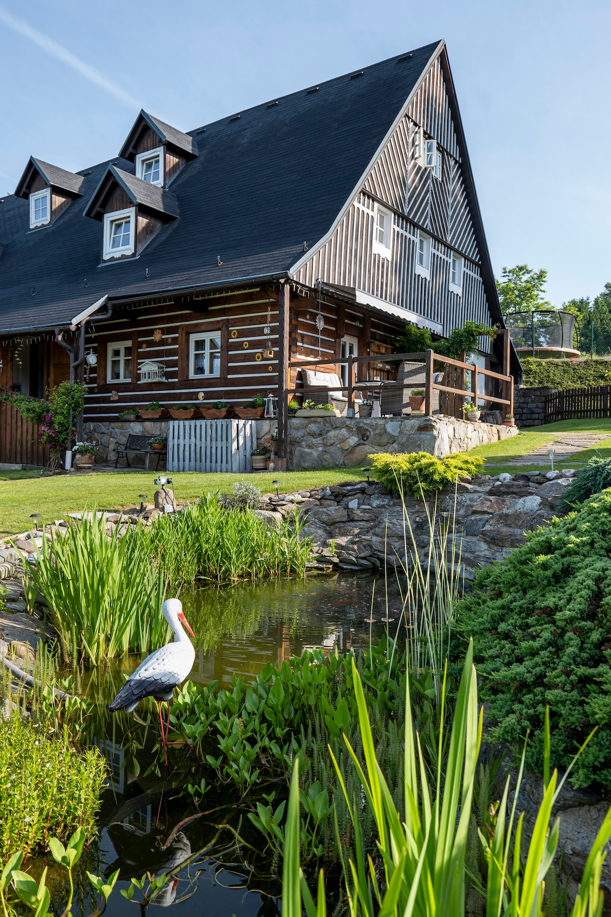 Jedinečný, nové vybudovaný domek apartmánového typu vám nabídne jedinečný pobyt v klidné části Jizerských hor. V létě můžete posedět na kryté terase u koupacího okrasného jezírka, v zimě zase relaxovat ve finské sauně. V nejbližším okolí najdete vyžití jak pro cyklistiku, pěší turistiku, nebo jen houbaření v okolích lesích. V zimě můžete vyrazit na sjezdovky, běžky, nebo prostě jen sáňkovat, a to vše v bezprostřední blízkosti domku. Domek samotný vám nabídne obývací kuchyň, 2 ložnice a koupelny.