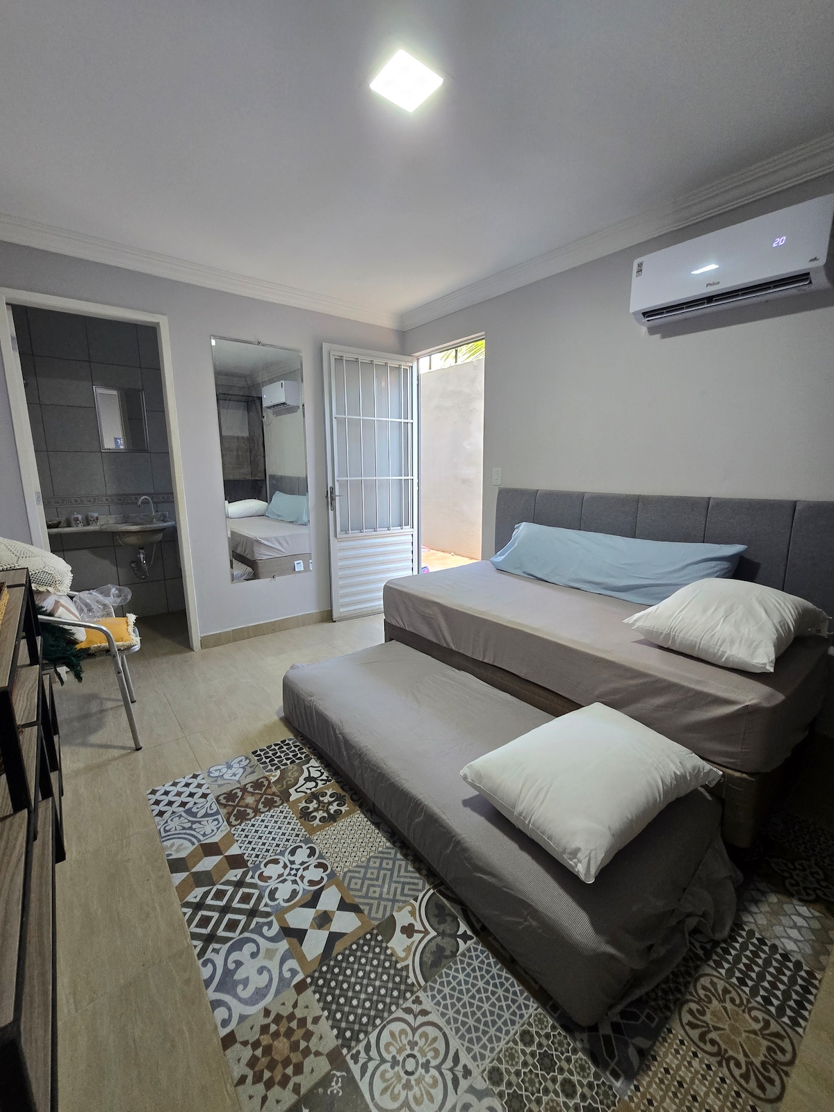Espaço individual, no térreo, com tudo que vc precisa para a boa estadia.Temos internet e Netflix. Lugar tranquilo .Flet dentro da casa com segurança.Ja temos outro flet na casa a mais de 6 anos dá uma olhada em kit Net próx ao centro de convenções. Nosso Atendimento é um diferencial .Não recebemos animais de estimação.