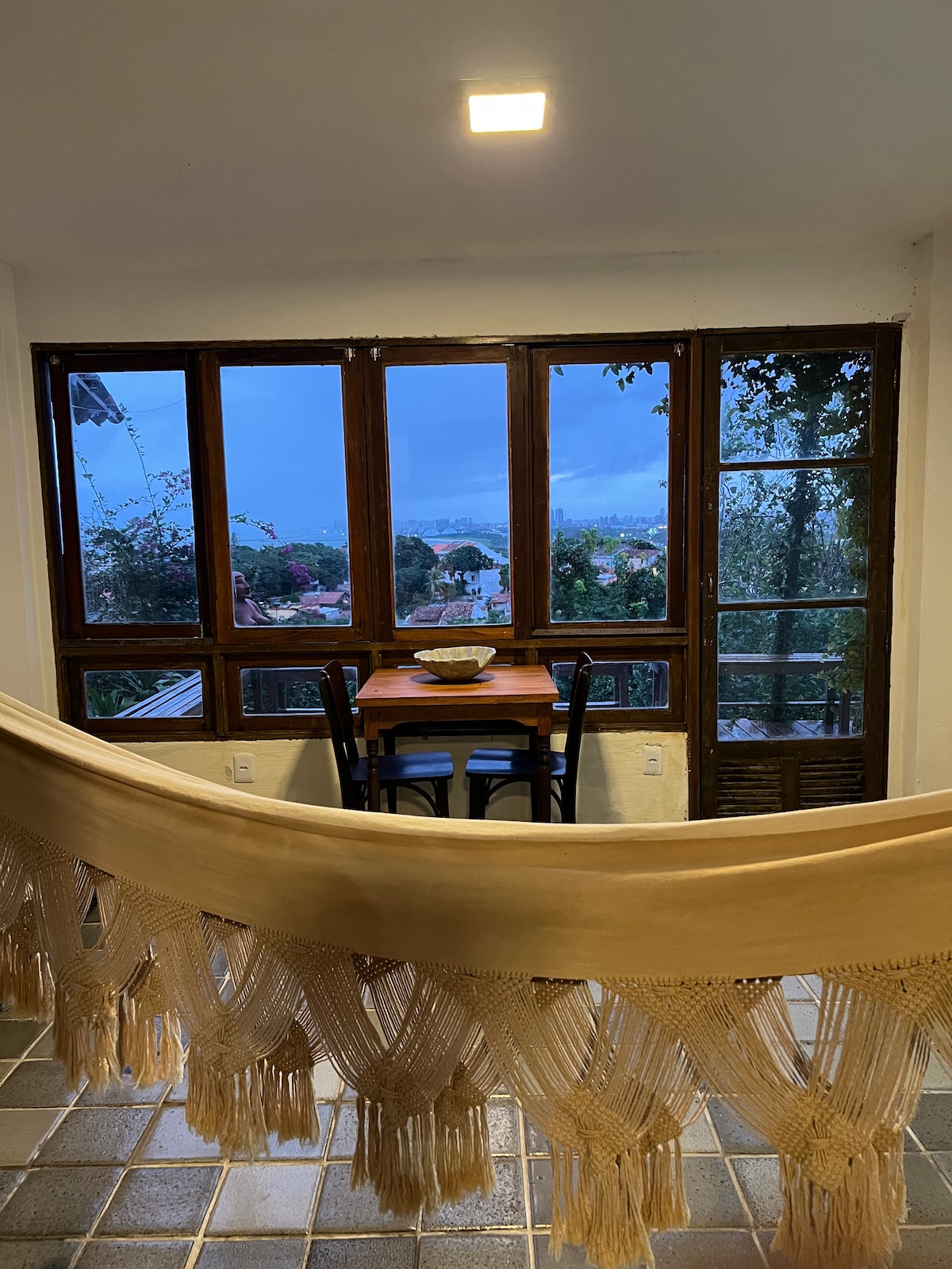 With a privileged view of Recife/Olinda, our loft is a great option for those who want to settle in with privacy, lots of green and comfort, in the heart of the main tourist spot in the region (our historic center). The Miradouro da Marim is a lodging located in Alto da Sé, where the studio of the plastic artist Sylvia Pontual operated in the 70s and 90s. This house dates back to the occupation of the Historic Site of Olinda by artists and intellectuals, which took place from the 60s onwards.