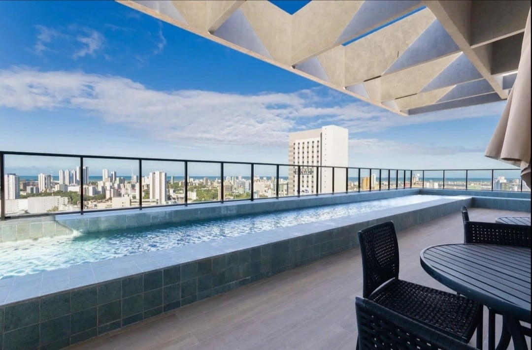 Excellent flat apartment with 35m2 on the seafront of Piedade. Condominium with 24-hour concierge, garage, shared laundry, gym and infinity pool with incredible views on the rooftop. Our space is super cozy and has everything to ensure your comfort and well-being. Surroundings full of conveniences within walking distance. There are restaurants, snack bars, pharmacies, supermarkets and various services, including a shopping mall.