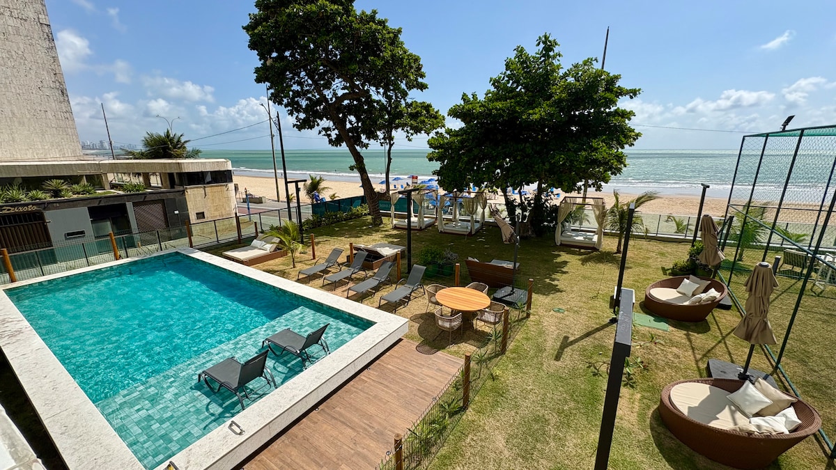 Flat alto padrão completo pé na areia e vista mar