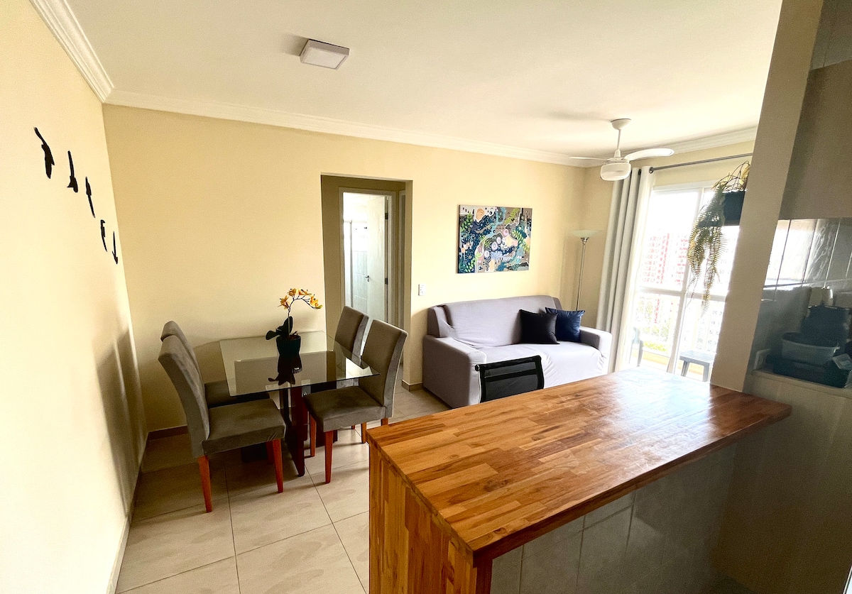 O apartamento é aconchegante atende 4 hóspedes , fica dentro de um condomínio fechado. Possui 1 vaga de estacionamento e portaria 24h. Oferecemos para você um apartamento claro, com camas confortáveis para uma noite de sono reparadora, enxoval de cama e banho. Ducha deliciosa , louças de qualidade. Cozinha completa com fogão, microondas, geladeira, cafeteira, airfryer , liquidificador. Você estará a 5min da Dutra , 15 min do centro da Cidade e a menos de 10Km da Embraer, Aeroporto de SJK e CTA.
