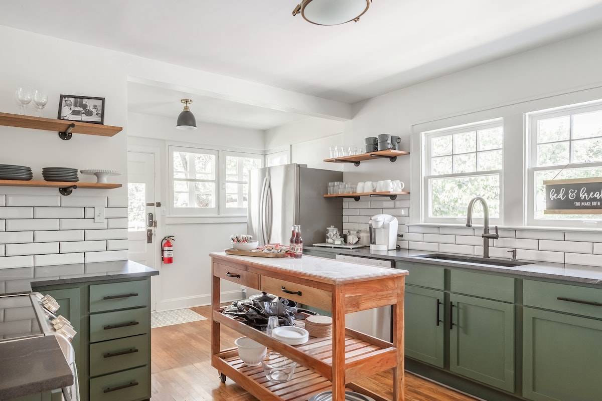 The Harris House is a real gem nestled in the heart of Historic DT Lee’s Summit! Just steps away, enjoy shopping, restaurants/bars, coffee shops, Farmer’s Market, & much more! Across the street is Harris Park & Summit Waves water park! Catch a train ride on the Amtrak, or just enjoy the nostalgic sound of the trains as they travel thru this quaint little town! Perfect space for out of town work! Easy hi-way access to Chiefs & Royals stadiums, DT KC, The Plaza, about 20 min from everything KC!