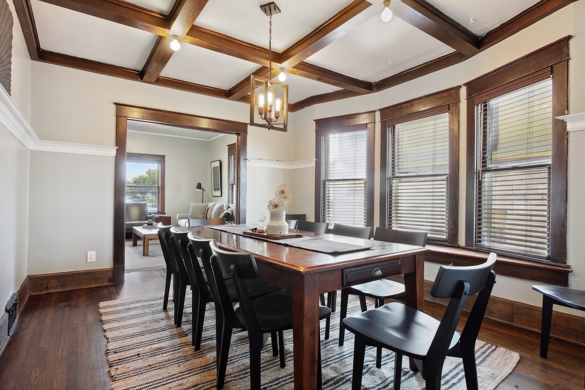 Look across to President Harry Truman's home, just as his secret service detail once did while occupying this historic house from 1970 to 1982. The home retains its historic character, plus latter-day luxuries like a 50" TV and bathroom with rain shower and clawfoot tub. Other upgrades include a modern kitchen and a dining table suited for both seating 8 and a competitive game of ping pong.