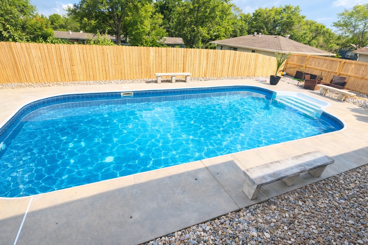 Ready for a retreat house with your own private heated salt water pool? This is it! Located just minutes to Soccer Stadiums, Royals and Chiefs stadiums, concerts downtown, Crown Center or Power & Light! This home is the ultimate retreat right in the middle of the city! Escape to a mini oasis with activities for every family member - a stocked kitchen for a chef, smart tv for entertainment, family-sized dining table ready for games, treehouse fort with toys for the kids. License number 10860