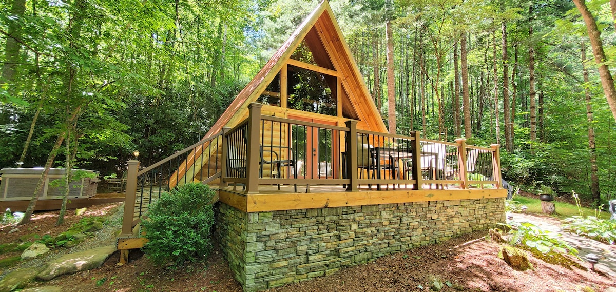 平均评分 4.94 分(满分 5 分),共 242 条评价Luv'n Mt'n小木屋,小屋下有热水浴缸,迎宾小吃