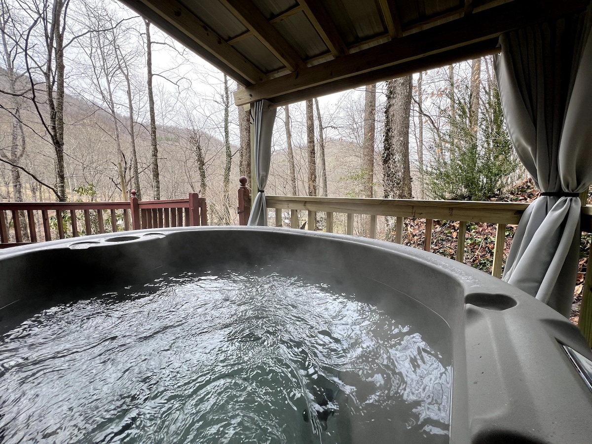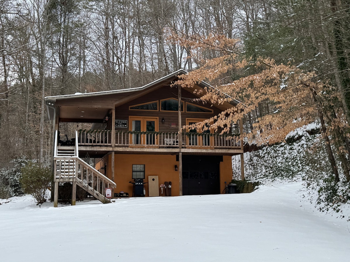Cozy Creek Cabin is a charming Log Cabin near the Smoky Mountain National Park. Come enjoy the peaceful sound of the creek while putting your feet up in the hot tub. Snuggle up by the fire pit and enjoy roasting marshmallows while taking in the sounds of nature. Centrally located with the feeling of nature around you, but close to downtown with restaurants and breweries close by. Only 9.1 miles to WCU Cook at ease from home with a full kitchen and grocery stores down the paved road to cabin.