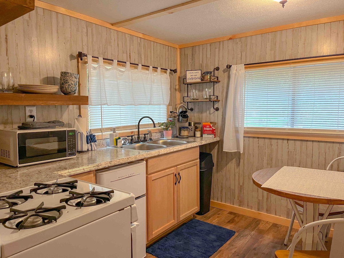 Catamount Cottage is a quaint retreat for either a single traveler or a couple. Located less than 1/2 mile from WCU and a 15-minute drive from downtown Sylva, it's perfect for work or play! This modern studio cottage is situated on a private drive in a residential area. The kitchenette, with granite countertops and an eat-in bar, has all of the amenities you might need. If there is work to do, you can utilize the dedicated high-speed internet and work from the bar-top or on the front deck.