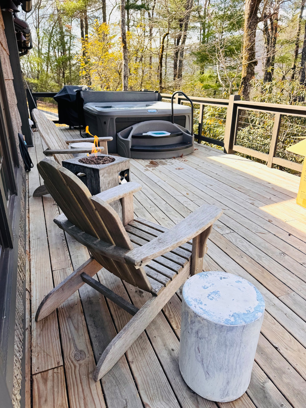 Welcome to your private mountain escape in Lake Toxaway, NC! This 1-bedroom, 2-bathroom cabin is a one-of-a-kind retreat, offering breathtaking sunset views, a peaceful wooded setting, and unique architectural details. Unwind in the hot tub under the stars, relax in the sauna, challenge your partner to air hockey, or cozy up by the fire pit—all while enjoying the beauty of nature. Plus, enjoy exclusive access to 3 miles of private hiking trails, perfect for exploring the great outdoors!