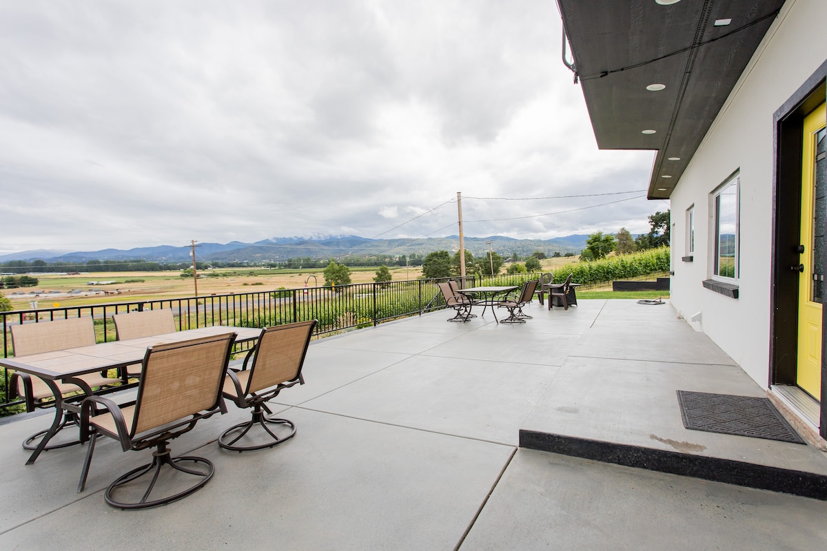 Stunning modern getaway on a flower farm with spectacular views. Nestled in the heart of the valley. 15 minutes from Ashland and Jacksonville. Home of Shakespeare and Britt Festivals. Over 6 wineries and a distillery within a 3 mile radius. Bright design with beautiful features. The many windows and French doors offer light in all directions with views of sunflowers, pear orchards and Roxy Ann Peak. One mile from the Greenway, a bike and pedestrian pathway linking Central Point to Ashland.