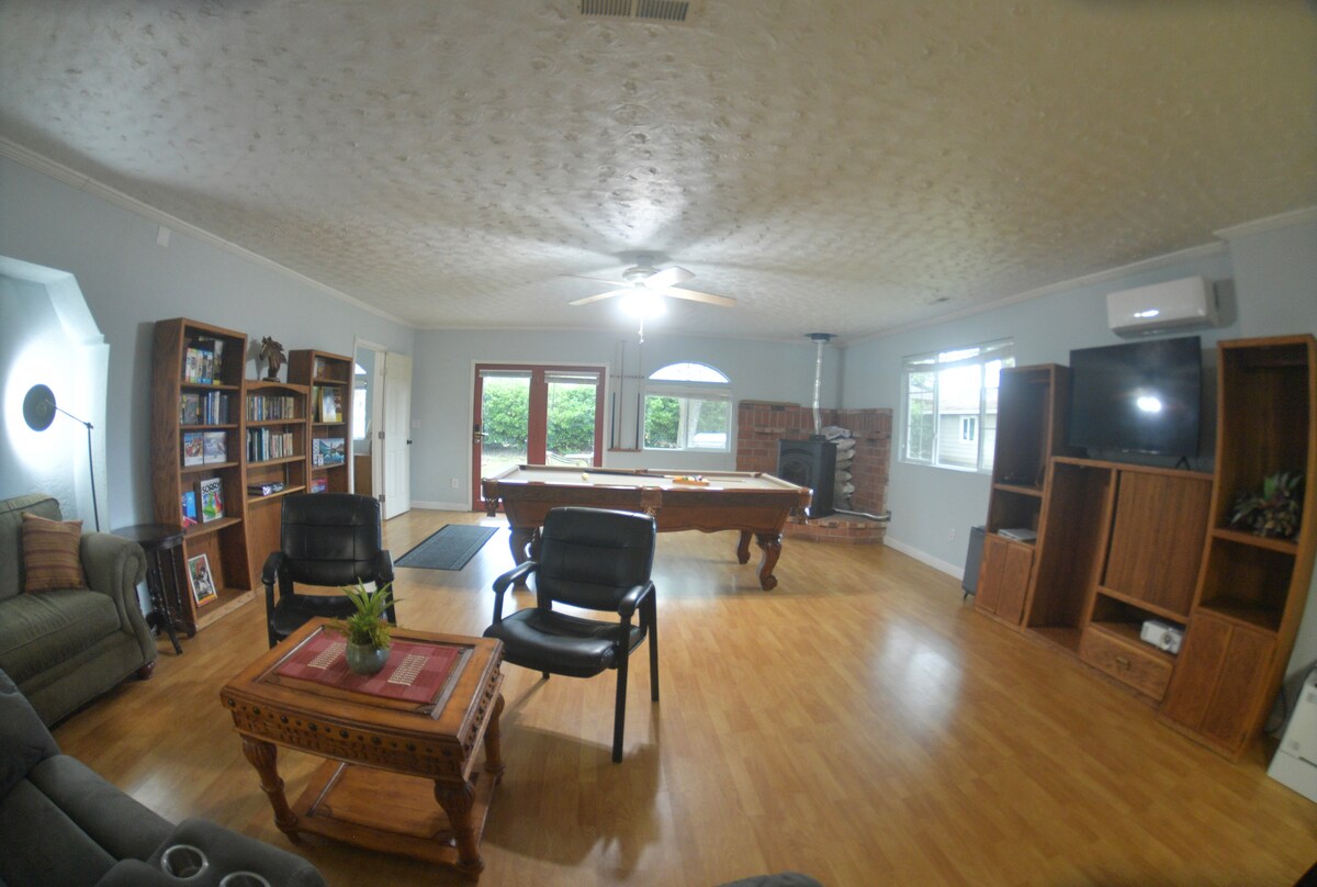 Relax and Unwind at this peaceful retreat. Near the Rogue River, this beautiful property is over an acre w/ lush green grass all around. Updated home w/ nice features & a notable primary bedroom&bathroom. Both rooms have work spaces & home has excellent wifi ~ 200mbps. Start your mornings with a delicious nespresso and enjoy the bird chirping outside. Outdoor oasis with comfy patio seating and outdoor dining area, backyard lights, fire pit, BBQ, and yard games. Close to TONS of outdoor fun!