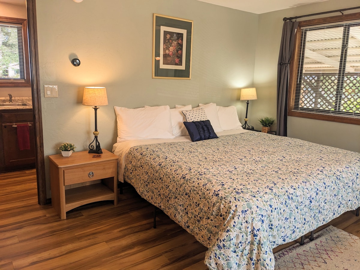 King Studio- Covered Parking- Patio -Kitchenette