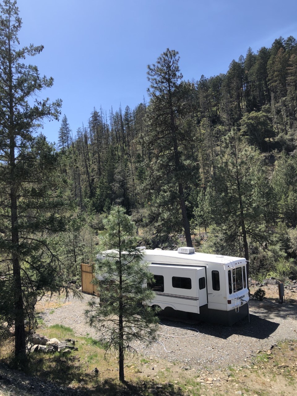 Privacy and a Slice of Paradise, On the Upper Applegate River This is a wonderful getaway for two or three, with 900 feet of private Applegate river frontage. You are able to sit on your private porch and listen to the river flowing by, hear birds singing, observe wild life, fish in the river, and star gaze from our outdoor hot tub. This 36 foot, fifth wheel camper is nestled on 2 acres of land, just steps from the Applegate River, surrounded by the Siskiyou National Forest.