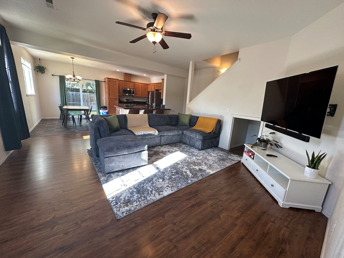 Your family will be close to everything when you stay at this centrally-located place. Airport, restaurants, shopping all near. Entire two story townhouse, Full Kitchen, 3bd*, 2.5 bath *all bedrooms located upstairs Small hot tub in backyard Tesla charger to keep your battery full from the comfort of your stay Washer and Dryer Fully equipped kitchen Garage and Driveway Parking